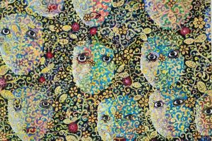 Sementara itu, lukisannya berjudul Ekspresi Wajah, Subrata mencoba menyuguhkan fenomena yang dihadapi masyarakat kekinian yang penuh tantangan atau cobaan hidup. Ekspresi wajah muncul beragam, ada yang memperlihatkan raut wajah yang sedih, gembira, stres dll. Dalam karya itu wajah-wajah dihiasi rangkaian “pepatran”, memberi pesan bahwa berbagai tantangan atau cobaan hidup tak kuasa dihindari. Maka, tetaplah dihadapi dengan hati yang penuh sukacita.
