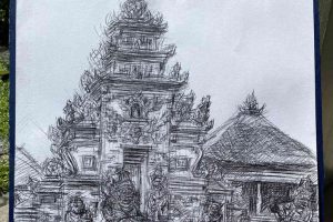 Tak hanya itu, “potret” Kori Agung Pura Dalem Ayunan juga dipindahkan Wijaya ke dalam karyanya bermedium kertas.