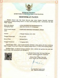 Akademisi Fakultas Pertanian, Universitas Warmadewa (FP-Unwar), Dr. I Nengah Muliarta, S.Si., M.Si., meraih sertifikat pengakuan paten dari Direktorat Jenderal Kekayaan Intelektual (DJKI) Kementerian Hukum dan Hak Asasi Manusia Republik Indonesia (Kemenkumham RI). Paten dengan nomor IDP000078474, didapatkan setelah menemukan komposisi mikroba perombak Jerami yang merupakan mikroba lokal Bali. Disebut sebagai dekomposer lokal Bali karena mikroba yang berupa bakteri dan jamur yang digunakan merupakan hasil isolasi mikroba di wilayah Bali.